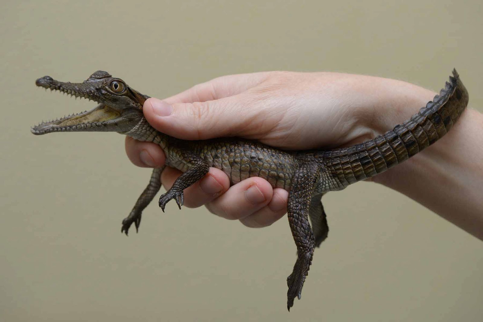 Look at this picture of a baby crocodile. Are you surprised by how small they are?