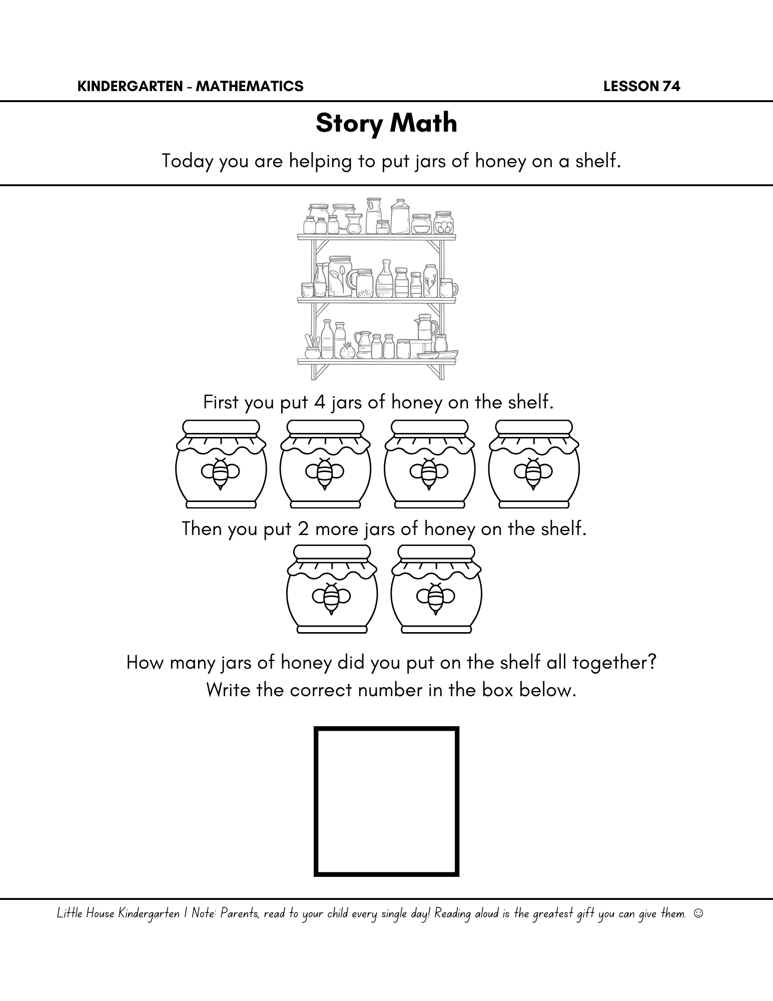 Little House Kindergarten Math Day 74