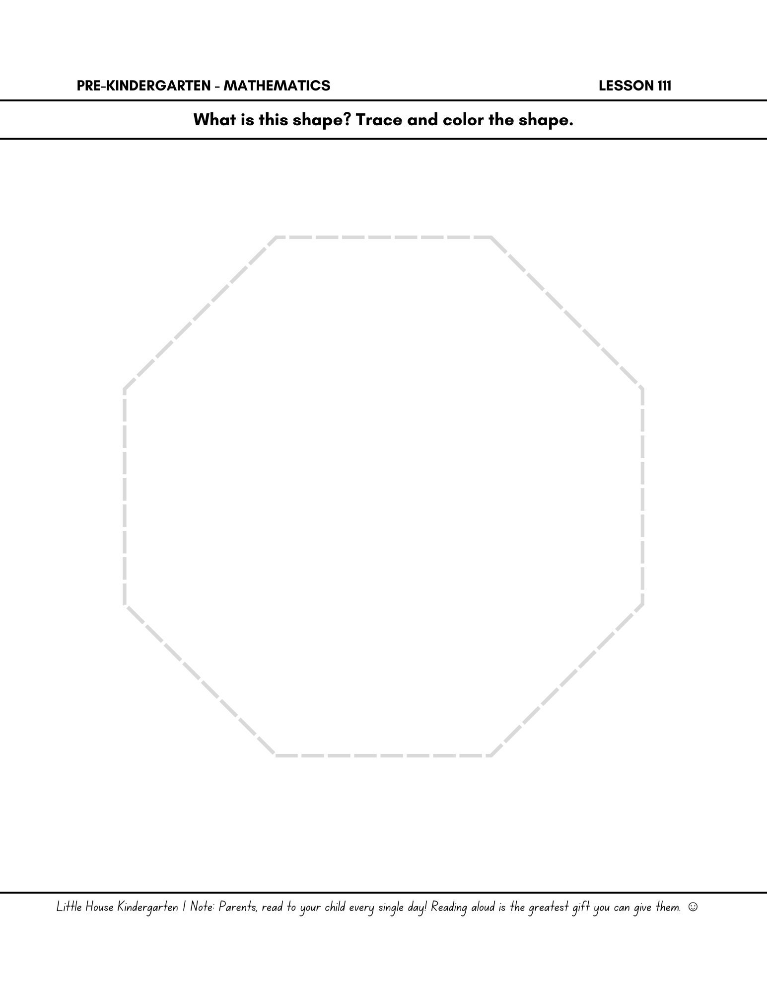 Little House Pre-Kindergarten Math Day 111