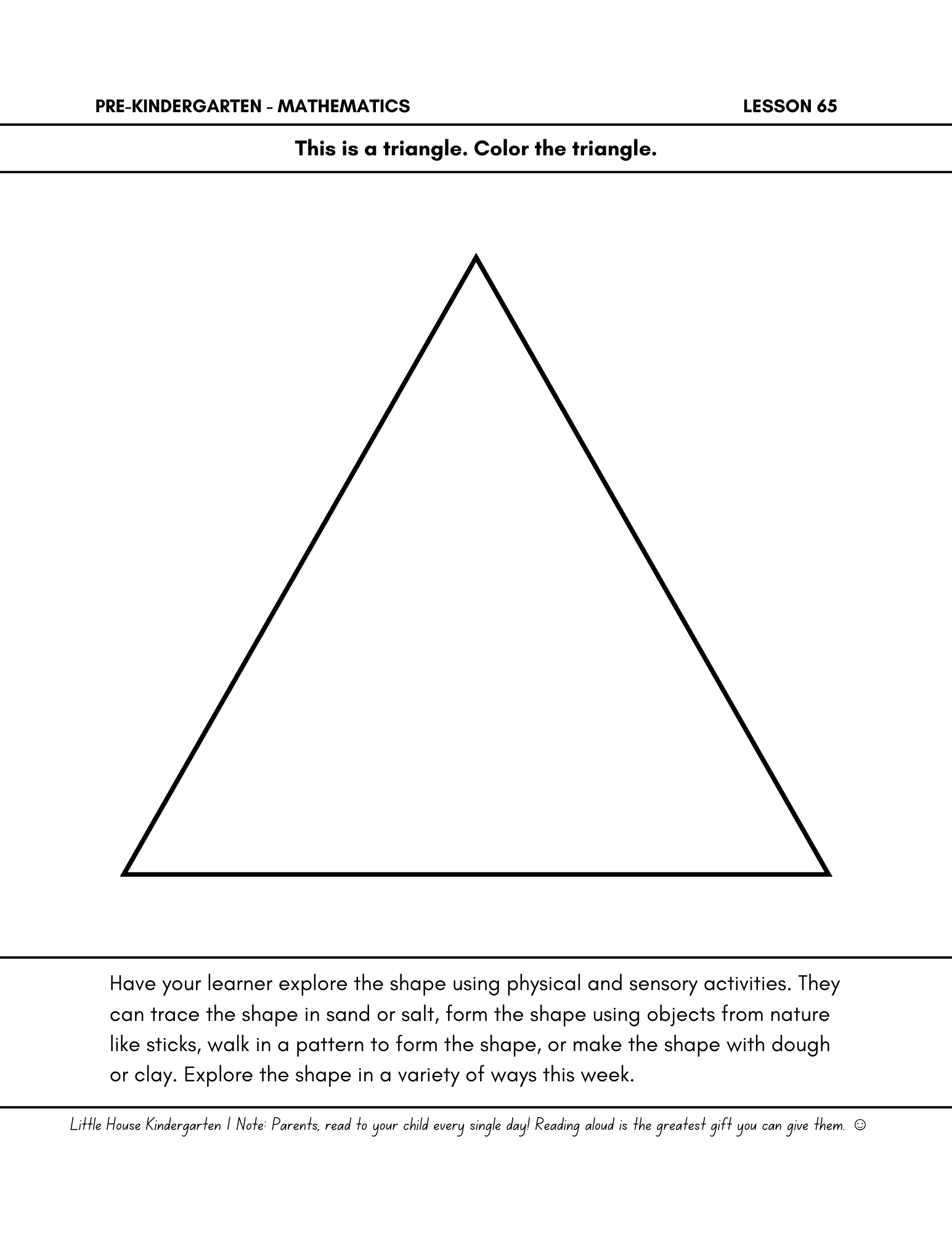 Little House Pre-Kindergarten Math Day 65