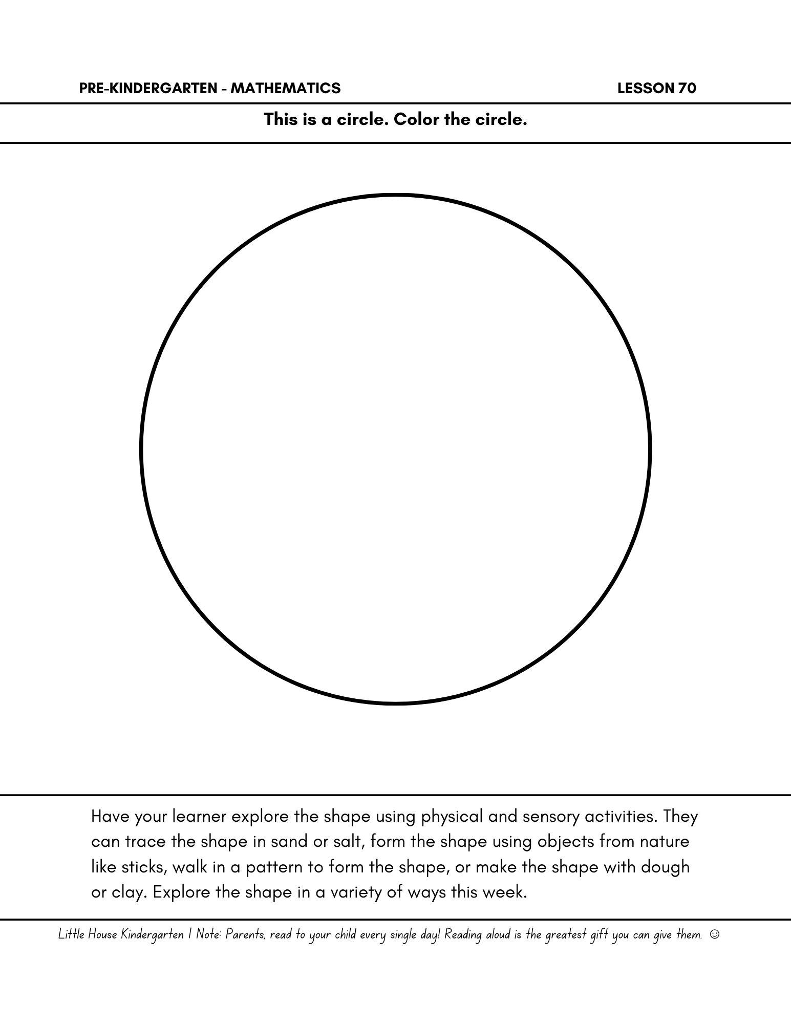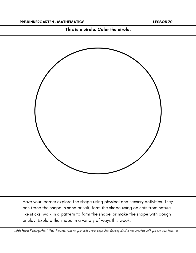 Little House Pre-Kindergarten Math Day 70